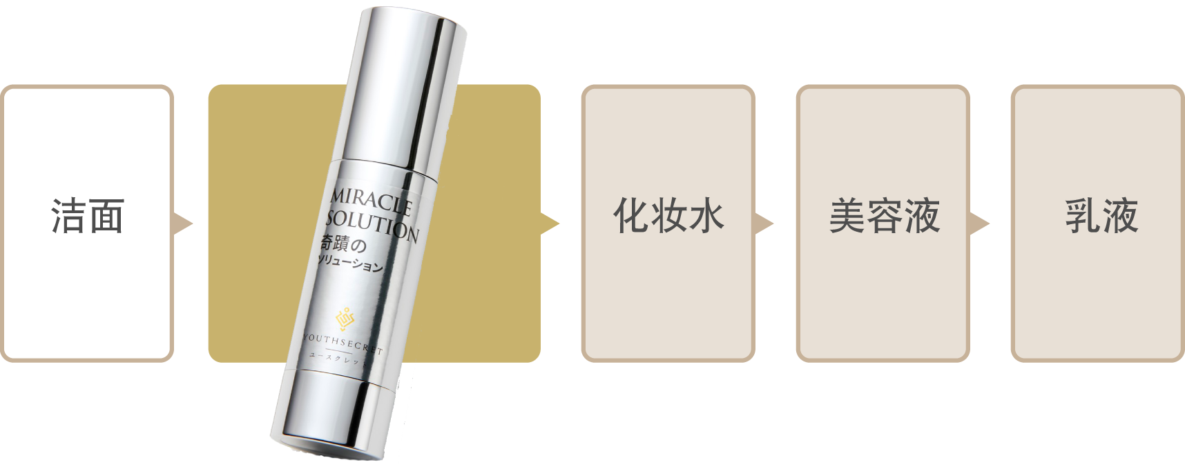早晚洗完臉,押2-3泵到手心裏,用手指塗抹到全臉。10秒左右完全乾透后,塗抹化妝水(參考量500日元大小左右,分2·3次塗抹),美容液,乳霜。