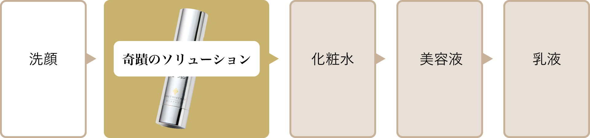 「奇蹟のソリューション」は、お肌のハリや潤いキープに欠かせないコラーゲンを低分子でたっぷり配合しています。お肌の内側からみずみずしくハリのあるお肌へ導きます。